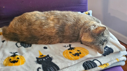Tsuki enjoyed a really chill week, full of rest and relaxation. It was such a mood this past week; not sure if it's due to sleep struggles, energies, or what, but man, was it tempting to try to just sleep the week away (even though it wasn't possible to do so).Tsuki savored her cozy cat naps, recharging her batteries to be ready for wild antics and shenanigans. She had a blast playing with her toys once she was all rested up (and she even destroyed one of them). This goofy kitty definitely keeps things interesting.