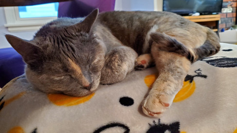 Tsuki was her typical self this week; she can be such an adorable nut. She had gotten mad when there had been a bunch of storms this week because she prefers to enjoy birdwatching and soak up the sunshine on the porch (pretty hard to do when there's severe thunderstorms and even a tornado). Tsuki enjoyed plenty of cat naps and shenanigans, spying on me while I worked on diamond art and plotting how to get things. She definitely loves her snoozes and snuggles.