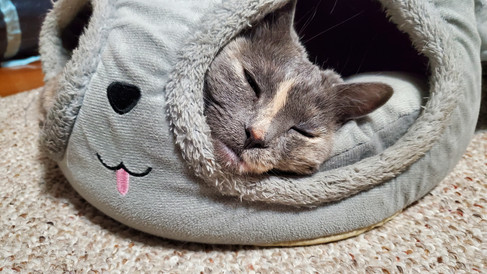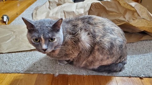 Tsuki had a pretty chill week. She enjoyed plenty of cozy cat naps, snuggly snoozing with me, birdwatching from her window shelf, playing with packing paper, getting cozy by the fire, and being her typical goofy self. Tsuki was also excited that I redid her inclined scratcher that I got for her when she was a kitten; she had been tearing it to shreds, and now it looks as good as new. Grateful to have her in my life and to snuggle together during the cold winter months.