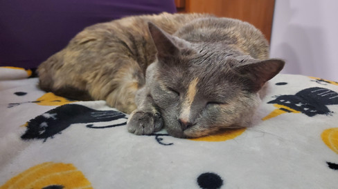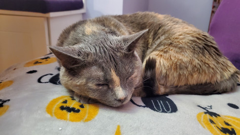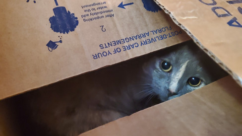 Tsuki had a pretty chill week full of cat naps and playing in boxes, although we had a bit of a health scare, which led to her getting miffed about going to the vet. Thankfully, it was basically preauricular alopecia that's fairly common in cats (although the vet said that it was exacerbated by stress from changes in the environment, namely my brother bringing his massive, untrained dog to stay here). Grateful it's not some serious illness, but not happy about the stress part. Otherwise, it was same old, same old; Tsuki snuggled up with blankets, got cozy in her cat house, lounged on her window shelf, and snoozed peacefully to replenish her energy for antics and shenanigans.