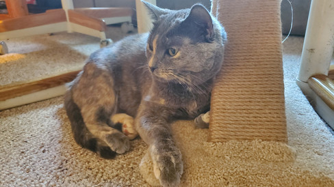 Tsuki was excited for a full week of freedom (the remodelers didn't bother to show up at all this week). She enjoyed being her typical, nutty self and having free roam of the entire house. She loved playing with her bells, sprawling out on the couch, and watching the birds and squirrels from the window. Tsuki especially enjoyed snuggling with the cooler weather and spent the entire morning yesterday curled up on my lap.