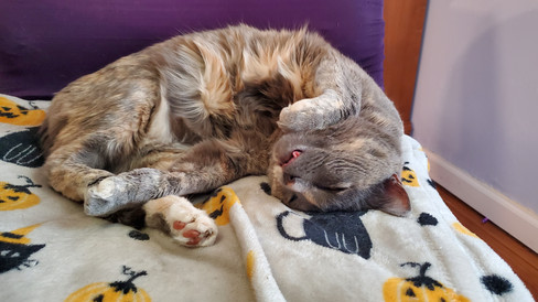 Tsuki was her typical adorable and goofy self. She enjoyed plenty of cozy cat naps, antics, and shenanigans. Tsuki soaked up and savored the sunshine out on the porch, played in boxes, lurked around corners, snuggled up on blankets, attempted sneak attacks, and hung out with me while I worked on diamond art. She definitely keeps things interesting and lively.