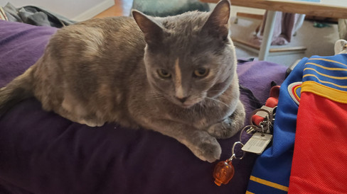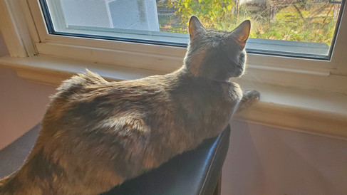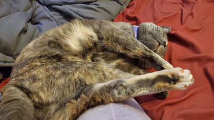 Tsuki was her typical goofy self this week, although the cooler weather definitely has made her sleepier. She still will bounce off the walls (and I mean that quite literally), just not as much as usual. Tsuki loves to sleep in her cat house, but her favorite spot right now is probably the bench seat. She is constantly lounging, napping, and playing on the bench seat. She'll even drag straws and toys up there with her! Tsuki is such a goof!