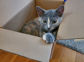 Tsuki is adorable, as per usual, but she's such a nut. She gets into everything and is such a Sour Patch Kid. She'll be sour then sweet (or sweet then sour). She always want to chomp on my feet for whatever reason. She'll launch herself at my hands in attempt to chomp on them, too. She'll jump up at me, latching onto my clothes with her claws, so she can climb up my legs and back to perch up on my shoulder. She waited for me to get back from babysitting at the window (much like fluffy cat used to). She played and napped in a box (it had my new InuYasha shirt in it originally) this week. She put herself in timeout by knocking her playpen over when she was all hyped up and bouncing off the walls. She's such a goof.