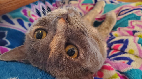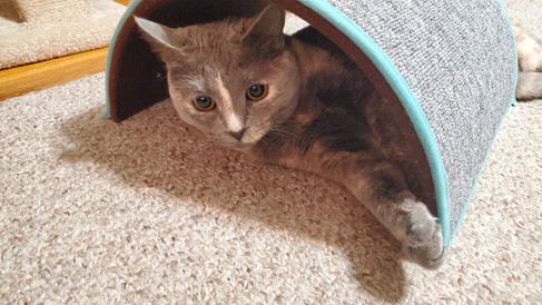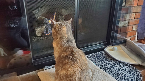 Tsuki was her typical goofy self. She enjoyed snoozing quite a bit due to the cold weather, and she was so excited when we got a new fireplace on Friday (the previous one stopped working and hadn't worked all winter).Tsuki enjoyed playing with various toys, stealing paper beads, and bird watching. She was also ecstatic when my gift for her arrived and immediately started using (and playing with) her new cat scratcher cave.