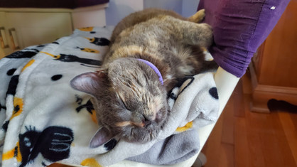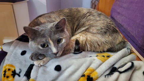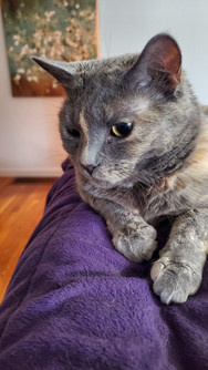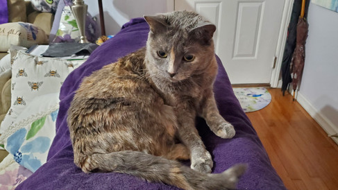Tsuki was her typical adorable and goofy self this week, as per usual. She spent plenty of time snoozing on the back of the couch, enjoying cozy cat naps on her favorite chair, lounging on her window shelf for some birdwatching, spying on animals from her perch on the couch at the front window, sleeping the day away in her cat house, and having her fill of fun. Tsuki also enjoyed plenty of antics, like sneak attacks, playing with her food (and knocking it around), wedging herself into her cat scratcher, and all of her goofy ways. There's never a dull moment with her around.