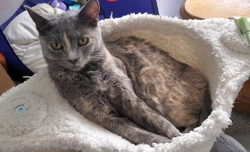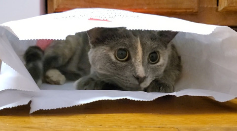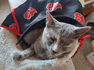 Tsuki's been her typical, adorable, nutty self. She's snuggled with me. She's hung out in her bed and cat house. She's tried to catch spots on the wall. She's hung out in bags. My sister even got her a new cape.