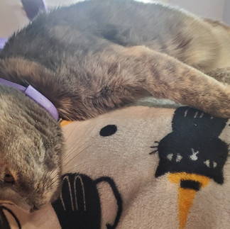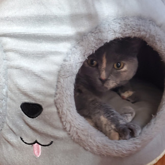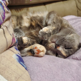 Tsuki loved the cooler weather, savoring the fresh air and crisp breeze. She enjoyed plenty of cozy cat naps on the couch, her window shelf, and her chair. Tsuki had a blast playing, darting around the house, getting into all sorts of shenanigans, and being a goof. She also enjoyed lounging while birdwatching at the window. It was a pretty chill week, and Tsuki savored every bit of it.