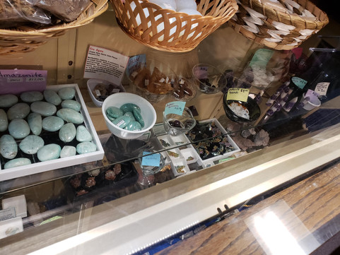 We wondered how we should continue our adventure. Corliss and I had been looking forward to Silver Lady, as mentioned previously, but it was no longer an option. She was bummed that the crystal stores closed so early. I reminded her that one crystal store we went to in Chicago stayed open later, so there could be one somewhat in the area that's open here. Mystic Valley was still open, but it was neither really close nor really far. We decided to go for it and check it out since we've never been. It was a neat shop with beautiful crystals--not as many as Prospectors but still a nice selection. It was interesting to find that it had it's own little cafe inside. Neither of us had expected to add to our collection, or at least to the extent that we did, but we have no regrets. They even gave us a free stone with our purchase.